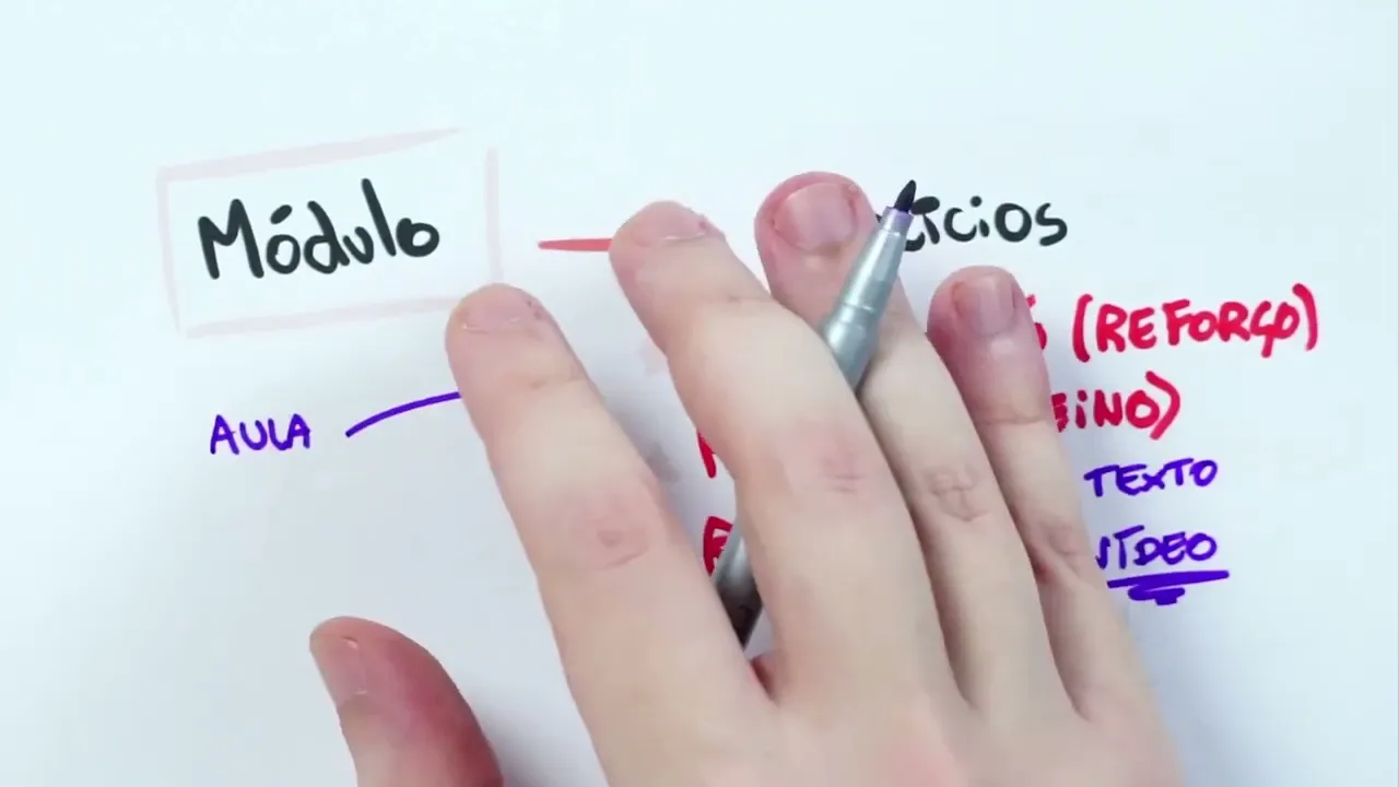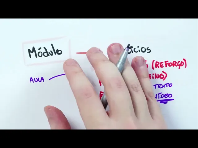 dependendo a gente pode ter um módulo focado em uma atividade com aulas em texto tudo depende do assunto e da organização feita pelo professor para que você tenha a melhor forma de receber o conteúdo vamos falar um pouco sobre como são as aulas primeiro você já percebeu que as aulas aqui são na mãozinha Esse é o formato de aula a gente vai ter toda a organização com aula sempre objetivas Então não vai ter enrolação não vai ter Ladainha por aí são aulas curtas mas sem ser superficiais ou seja aqui a gente tá falando de aul