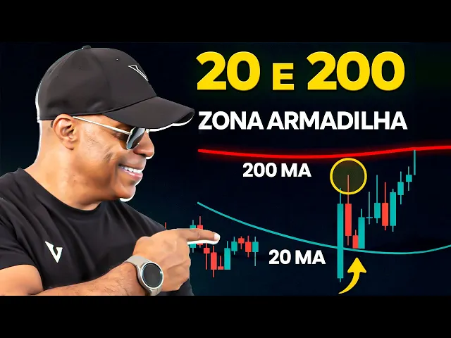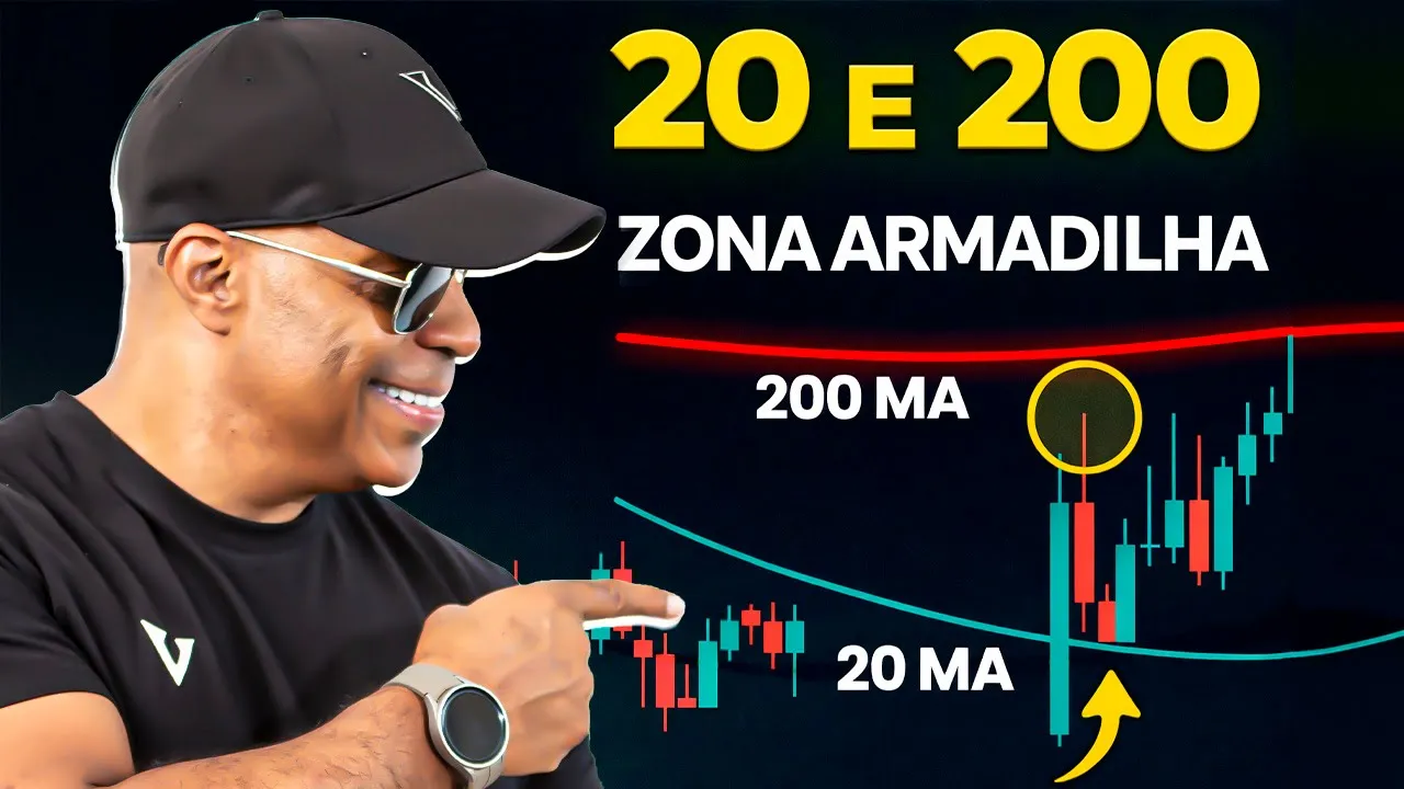 A as nossas maiores médias móveis são a de 20 e a de 200. E bom, quando você tem essa zona de armadilha, quanto mais uma ação cai ou sobe em direção a um dos itens, mais significativo este item de suporte ou resistência. É, deixa eu dar um exemplo disso.