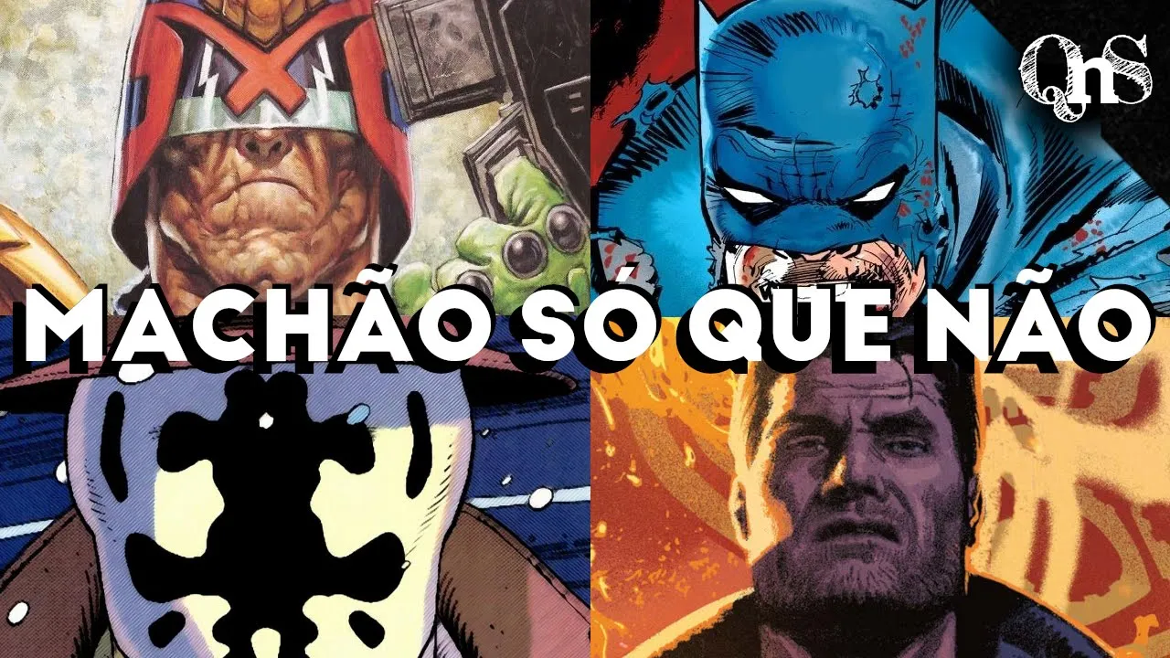 Então eu resolvi ajudar a resolver todos os seus problemas. Vou explicar no mesmo tom de grosseria e macheza porque personagens como Rorschach, Batman, Justiceiro e Juiz Drdd não são modelos de macheza para ninguém. Os comentários vão ser breves sobre cada personagem porque aqui no canal eu desenvolvo com calma, falo das histórias, falo desses personagens, então agora aqui realmente vai ser um negócio mais fast food.