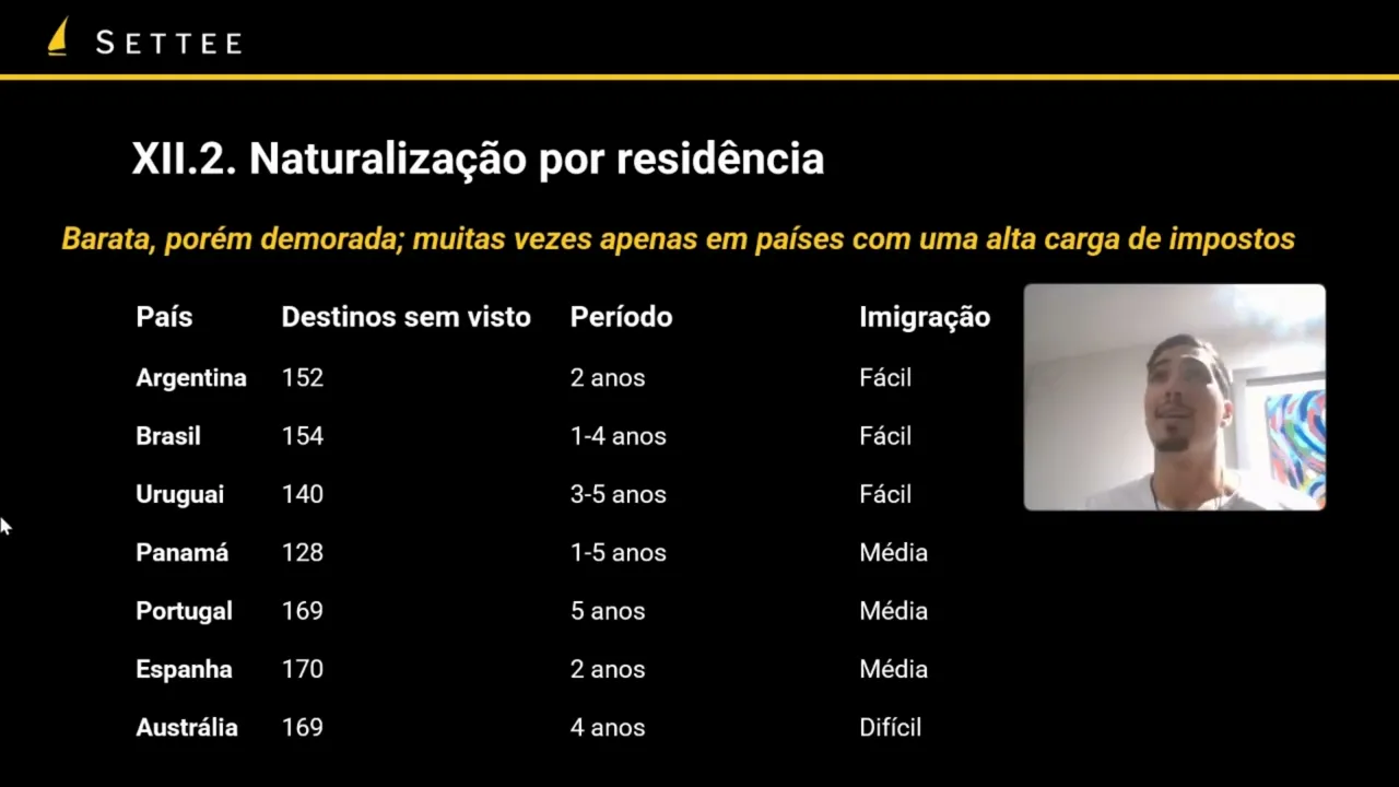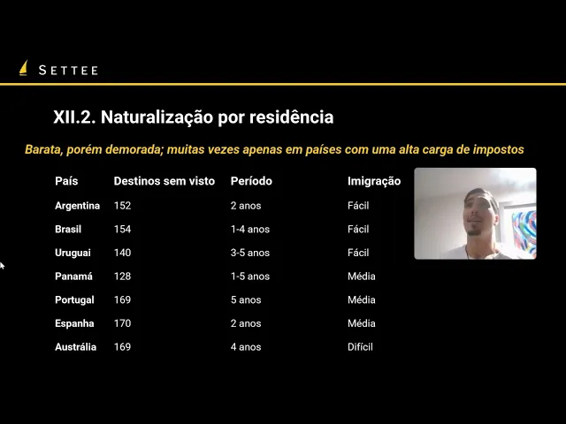 outros programas todos estão detalhados tanto na nossa enciclopédia segunda cidadanias E também uma visão um pouco geral pode ser encontrada no nosso blog Se você tiver interesse e é isso por hoje na próxima aula a gente vai começar a falar de algumas formas híbridas de uma cidadania e também a naturalização por casamento e já vão engatar o tema de casamento pelo mundo te vejo lá tchau