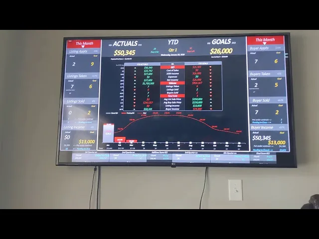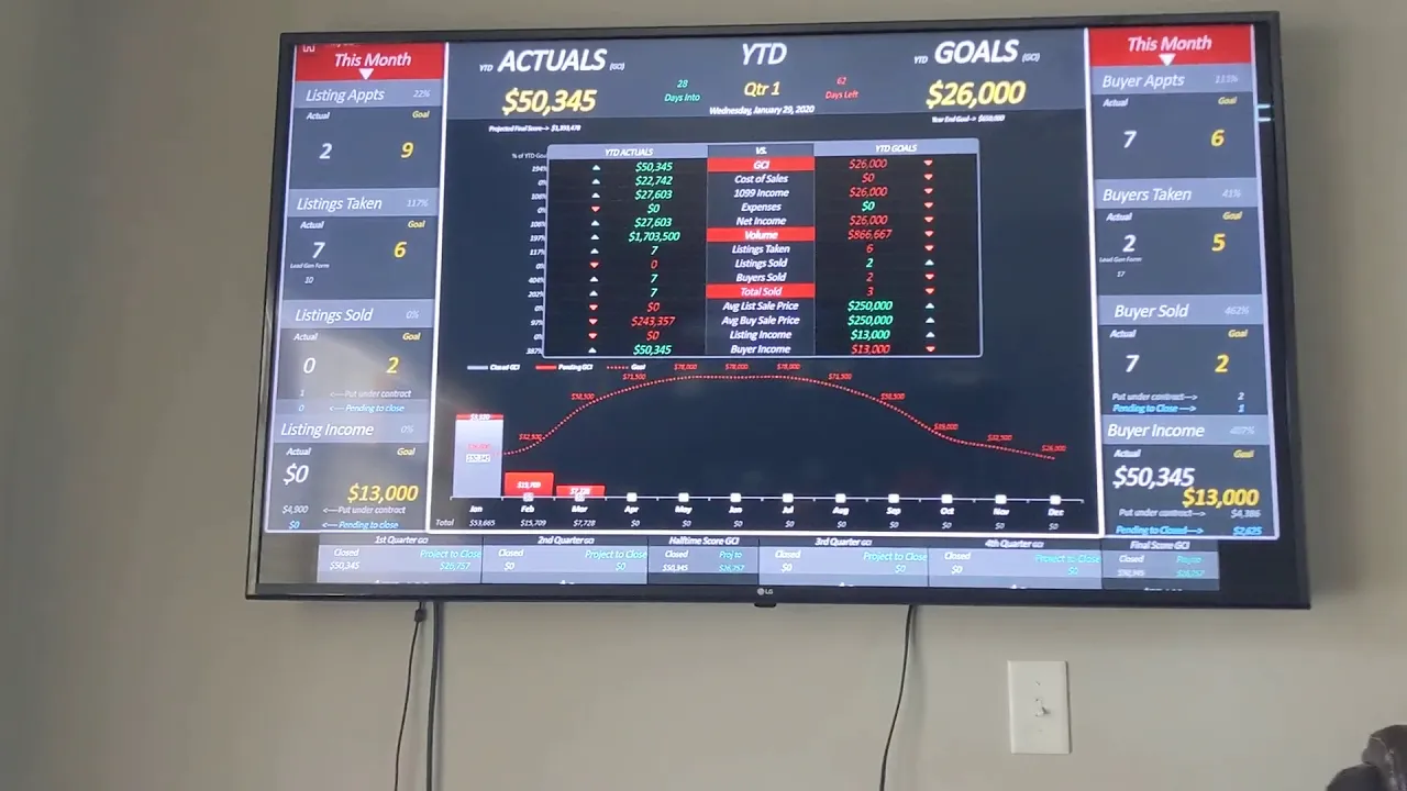 buyers taken two out of five buyers sold seven out of two buyer income fifty thousand versus our $13,000 goal so we're killing that you know we also have 26 hundred left to close this month and we put forty-three hundred under contract and then all my annual goals right there in the middle so I can see exactly where we're at and where should we be at your date obviously it's through January and then I can see my income what's closed is there in silver and then what's projected to close I can see my future months what