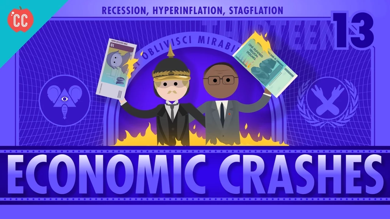 We're gonna talk about crashes - economic crashes. Adriene: Crash Course - we've been waiting for this! [Theme Music] Adriene: In Germany in 1923, people were doing strange things like using money to wallpaper their houses and burning money for heat.