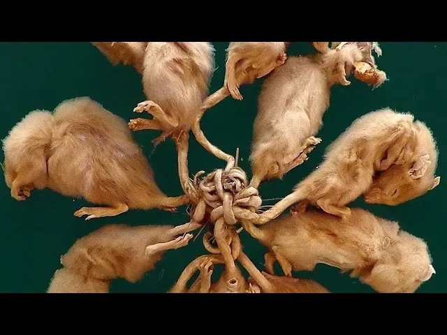 crenças infundadas o medos inconscientes que temos de animais que na verdade são inofensivos temer e evitar ratos é algo muito útil e com tudo isso dito acho que vocês já estão prontos para serem apresentados a um fenômeno muito raro que acontece durante a proliferação de ratos o nascimento de um rei dos Ratos Imagine você vários ratos aglomerados juntos pelas caudas devido a nós e muita sujeira pegajosa eles ficaram Unidos dessa forma se movendo de uma maneira esquisita todos juntos cada rato Tenta ir para um lado chiando mas todos estão Unidos até a morte Isso parece