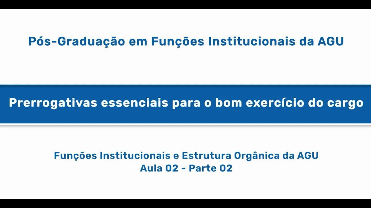 E aí [Música] Olá bem-vindos novamente nós estávamos falando sobre a importância da advocacia pública para a defesa do interesse público Olá neste balco nós vamos falar sobre algumas prerrogativas que são essenciais para o bom exercício do cargo Vale salientar esteja prerrogativas que aqui serão mencionadas não pertence a os agentes propriamente de tudo mais sim ao cargo quiser a existido pois ela existem para resguardar o boi difícil do Kangoo público bem como a o buraco que suas funções sejam desempenhadas de maneira técnica e distante das pressões políticas e econômicas com os membros da advocacia-geral da União