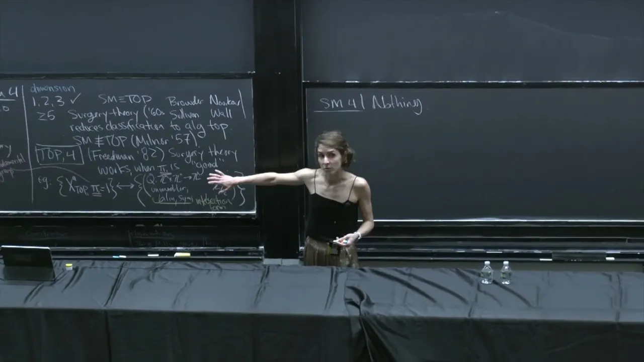Router novakov Sullivan and wall in particular and um in a slogan what you can think is that surgery theory is going to reduce the classification of manifolds to problems in algebraic topology um I want to comment here that I I think there is a misconception I I had this misconception for a long time that because surgery Theory exists the classification of high dimensional manifolds is kind of done um that's not True it's kind of not my problem anymore um but it's it's not known uh in general so so there are things that we know for