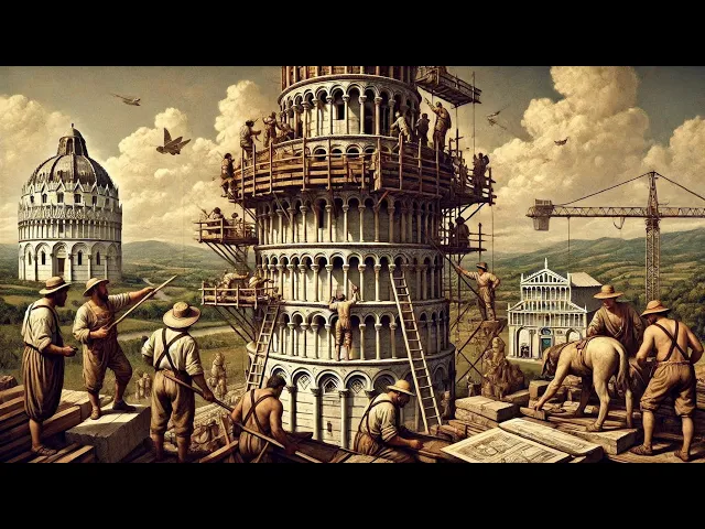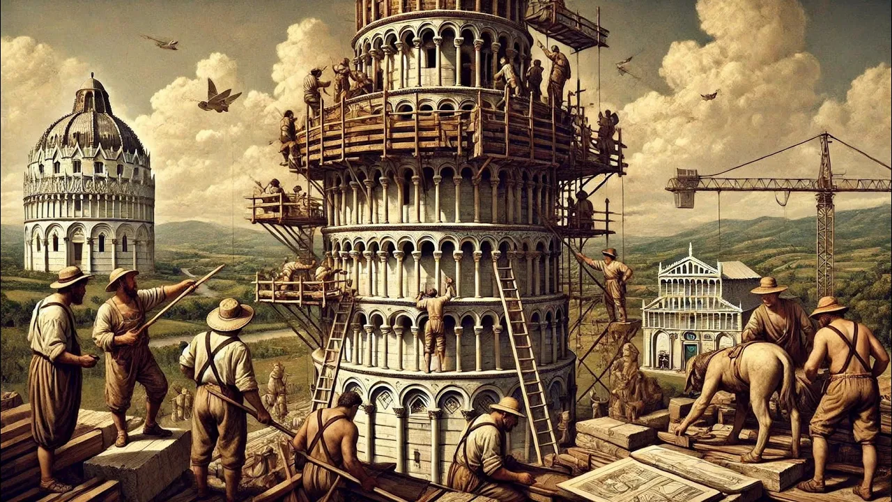 E aí [Música] o Olá pessoal sejam bem-vindos Hoje vamos falar um pouco da história da Torre inclinada de Pisa [Música] e foram necessárias três fases e 177 anos para construir a Torre de Pisa o arquitecto bonanno Pisano começou a sua construção em 1173 com o primeiro andar que era cercado por 15 colunas de mármore branco com capitais clássicos e Arcadas cegas com a construção do terceiro andar em o 178 a torre inclinou aproximadamente 5 cm ao sudeste por causa do terreno estado no qual estava sendo construída interrompendo a sua construção este período de pausa foi
