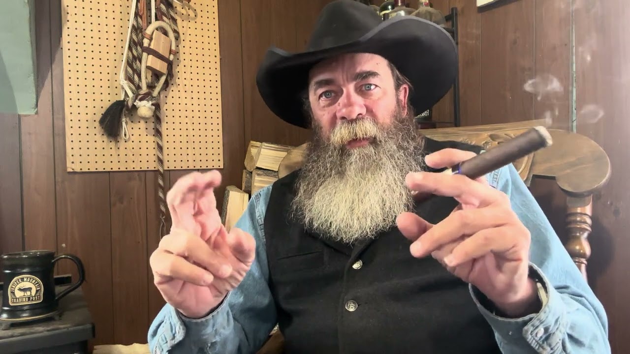 Dwayne here Dry Creek Wrangler school another morning here in the tack room trying to get some stuff done of course we have a fire in the wood stove and just finished my third or fourth cup of coffee but who's counting uh got a good cigar going I'll probably pronounce this wrong miketta um and uh it's a good strong cigar I I like these pretty well picked up a box of them recently um so any I want to read you another poem this morning if that's okay this is called life's Scars by Ella wheeler Wilcox um