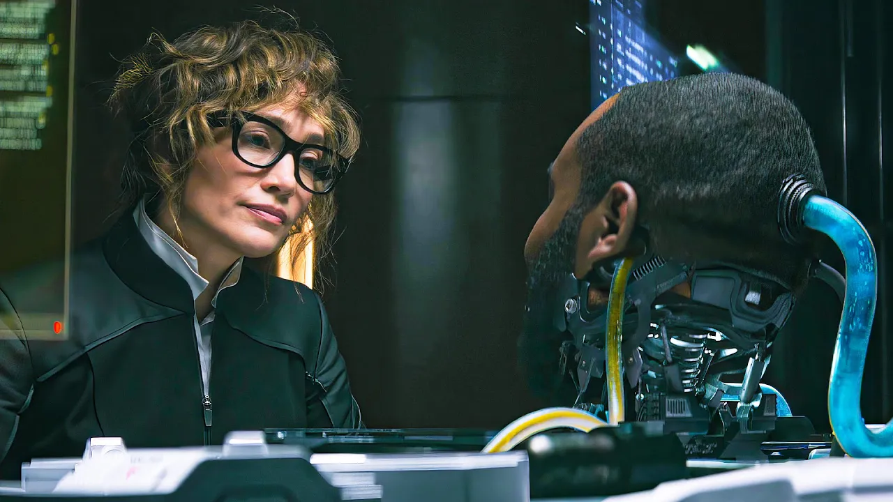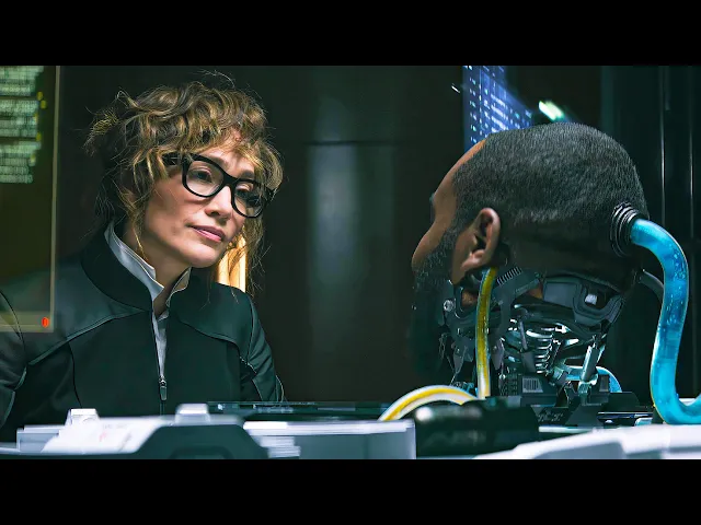 Bullets don’t affect him so it’s easy for him to just keep going. When he finds himself surrounded, he jumps to the lower floor, only to find a machine waiting for him to knock him out with an electric shock. The next morning in Los Angeles, Val’s now adult daughter Atlas is woken up by her house’s computer.