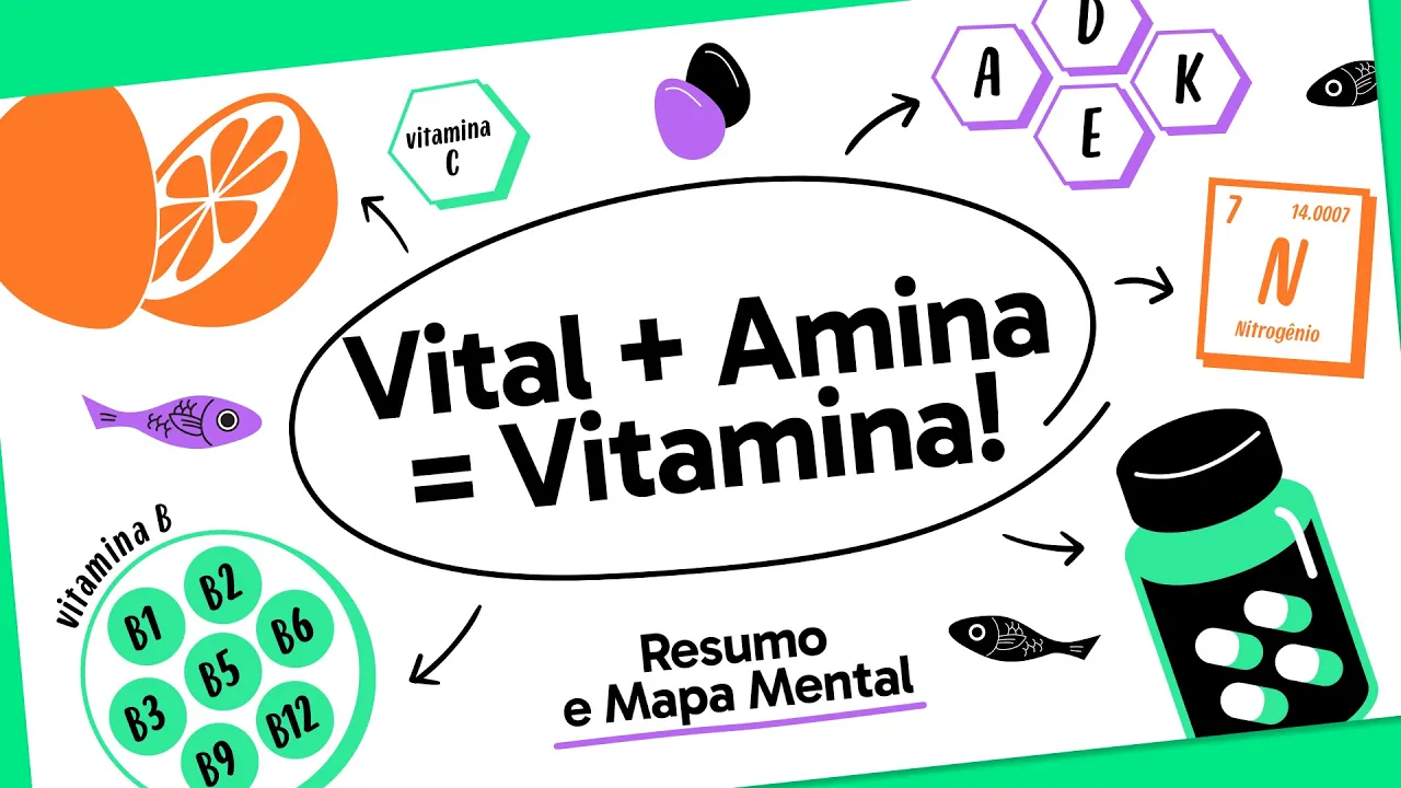 assunto de hoje é top primeiro de tudo qual é a definição de vitamina vamos lá boa parte das vitaminas são substâncias do grupo amigo a maioria das moléculas desse grupo são compostos orgânicos formados por nitrogênio o nosso organismo precisa de uma quantidade pequena dessas substâncias todos os dias as vitaminas são vitais para o bom funcionamento do corpo por isso esse nome amino mais vital igual a vitamina clã estamos falando da maioria porque a vitamina c por exemplo não tem nenhum nitrogênio na sua composição por isso galera muita atenção se algum enunciado da prova usar os