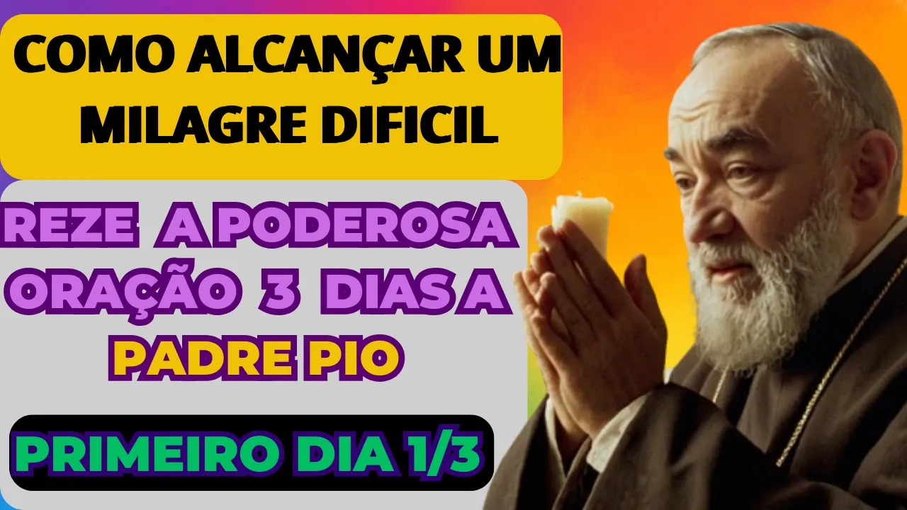 vida e continua a fazer luz do céu receba a minha petição com a mesma urgência e compaixão com que a atendeu a todas as almas durante seu ministério terreno que ao final destes três dias eu receba a graça que tanto preciso e veja claramente a mão de Deus agiu em minha vida oração por confiança e esperança Padre Pio que minha confiança nunca se abale e que minha esperança se renove a cada oração que por sua intercessão eu recebo o milagre que tanto busco e que minha vida seja transformada pela misericórdia divina Amém neste primeiro dia