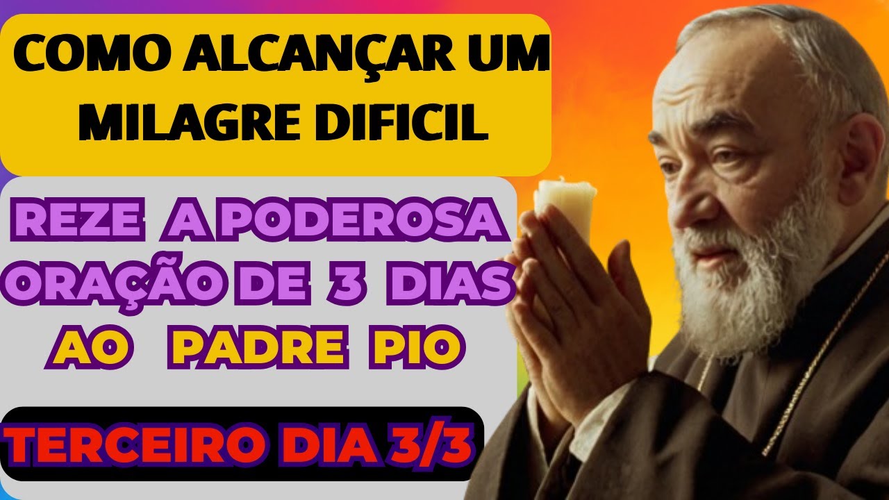 acreditar que estamos prestes a ver a mão de Deus segura em nossas vidas o terceiro dia de oração é o momento de reafirmar que por mais solicitações que apareçam a graça está a caminho oração do terceiro dia Padre Pio neste último dia de oração venho a você com meu coração repleto de fé e esperança sei que sua intercessão me mudou de Deus e que por meio de suas preces estou sendo abençoado que neste terceiro dia a dia eu possa receber a graça que tanto espero e que minha vida seja transformada pela R Divina Este é