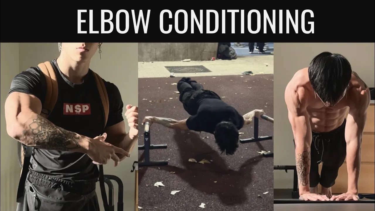 and methodically strengthen them to lessen the risk of your tendons being a limiting factor while you are training these difficult movements at a high intensity because of this you're going to want to limit the amount of high intensity work that you perform these joint heavy movements in so my conditioning routine consists of training these difficult ranges of motion at a very low intensity so the first step in conditioning is to assess your current range of motion for your elbows for example some people might not be able to fully straighten out their elbows and this can