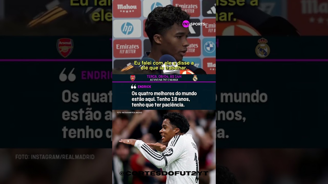 Eh, no dia a dia. Eu acompanho o Hendrick na na nas entrevistas e até dentro de campo fez gols por essa por essa temporada pelo Real Madrid, falando bem espanhol, fora dele, falando bem espanhol, se comunicando muito bem e com declarações pés no chão. Olha, eu sei onde eu tô, jogando num time que tem Vini Júnior, Bellenham, Mbappé.