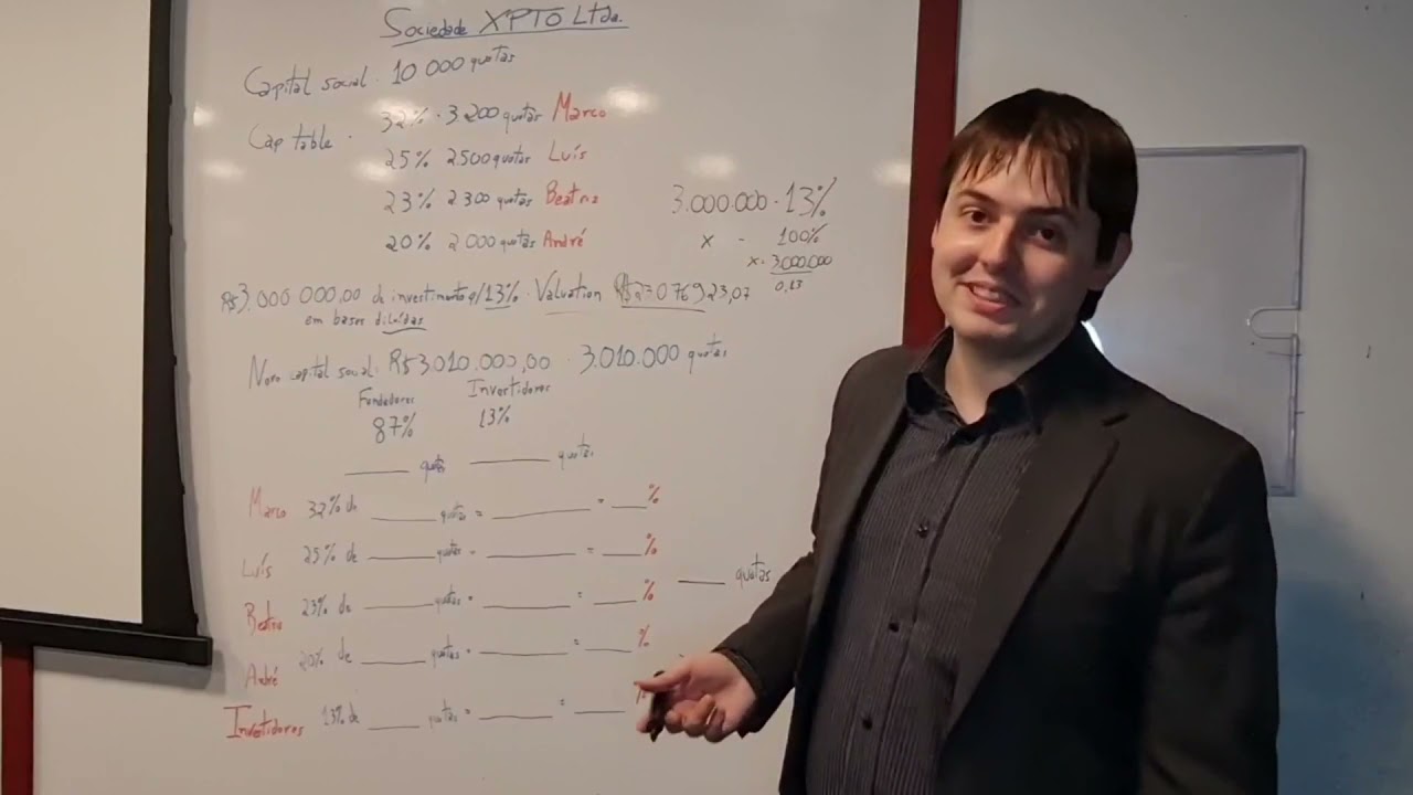 ou pro primeiro investidor que prometer colocar r$ 1.000 na sua empresa porque cada cada participação que você cede hoje pode ser que ela nunca mais volte para você então do mesmo jeito que você precisa ser Justo na hora de você distribuir participação entre seus sócios Você também precisa ser cuidadoso nos passos que você dá nesse caminho então se você ficou com alguma dúvida nesse vídeo é só você deixar aqui nos comentários pra gente responder tá E para terminar se você curtiu esse vídeo deixa o seu like se inscreve no canal para que você não perca