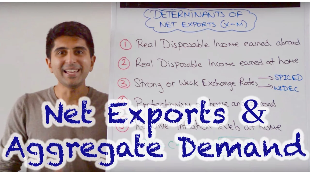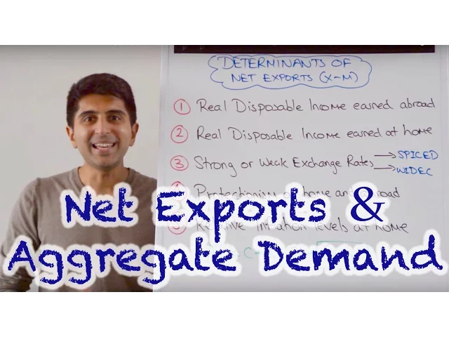 hi everybody let's continue by looking at factors that can shift the aggregate demand curve focusing this time on net exports remember the equation for aggregate demand which is C consumption plus I investment plus G government spending plus x minus M which is net exports let's now look at factors that can determine whether net exports increase or decrease and therefore whether aggregate demand increases or decrease if the value of this bracket increases aggregate demand will shift to the right how could that happen well exports could increase and or Imports could decrease that would increase the value