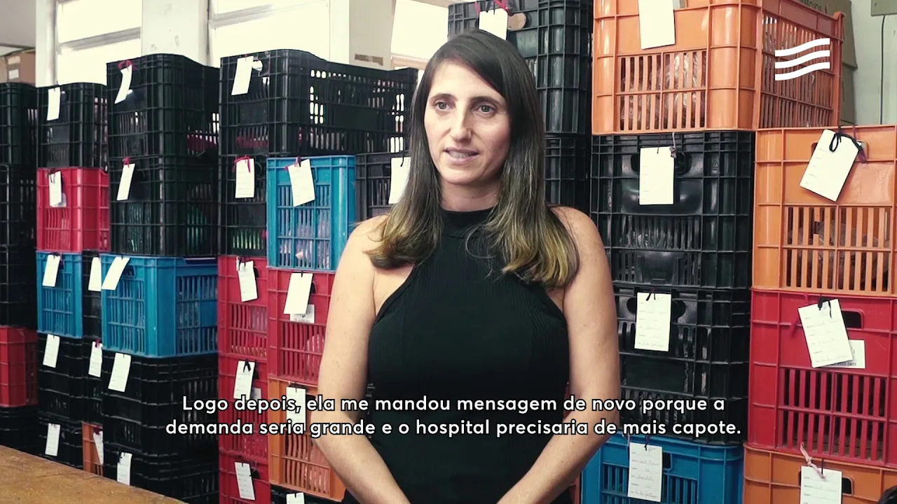 Mia é nós achamos interessante poder estar ajudando pela situação que nós estávamos vivendo né então eu mandei por mensagem no WhatsApp dos meus funcionários e perguntei qual o funcionário que tinha disponibilidade pois está nos ajudando e como era uma coisa simples não precisamos mexer no nosso maquinário a gente conseguiu fazer tudo normal e logo depois ela me mandou mensagem de novo porque eles a de mão da Sereia grande não tá eles precisarão e eu precisar de mais capote né Foi aonde nem entramos num acordo e eles começaram a mandar o material para a gente e