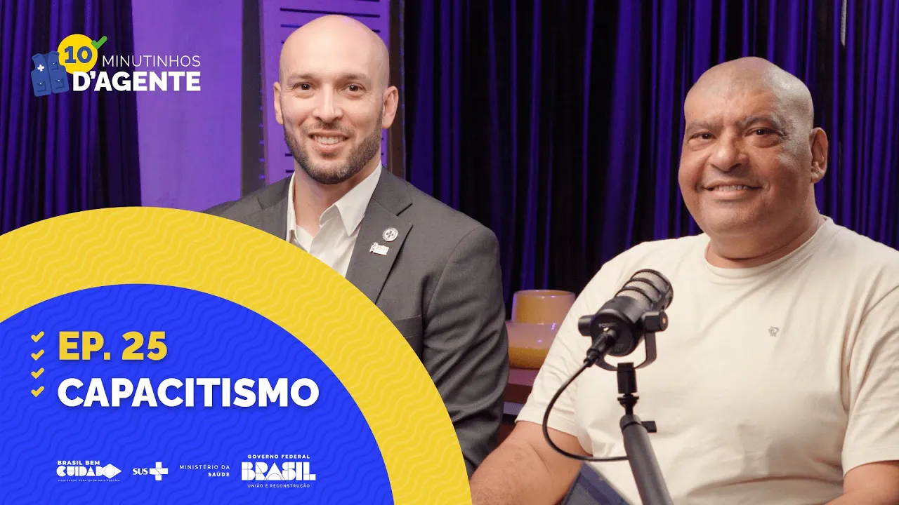 tema ela foi lançada em 2023 pela fio Cruz e apresenta dicas destinadas a toda a população brasileira para o enfrentamento a esse preconceito com linguagem simples e direta caso você tenha interesse em acessar esse conhecimento ou compartilhá-lo com seus colegas você encontra a cartilha no portal do Ministério dos direitos humanos e da Cidadania procurando por combate ao capacitismo e é isso pessoal nossos 10 minutinhos acabaram e para continuar se informando Acesse o site do Ministério da Saúde os canais do ministério no YouTube Instagram e Facebook e não deixe de ouvir o papo saúde disponível no
