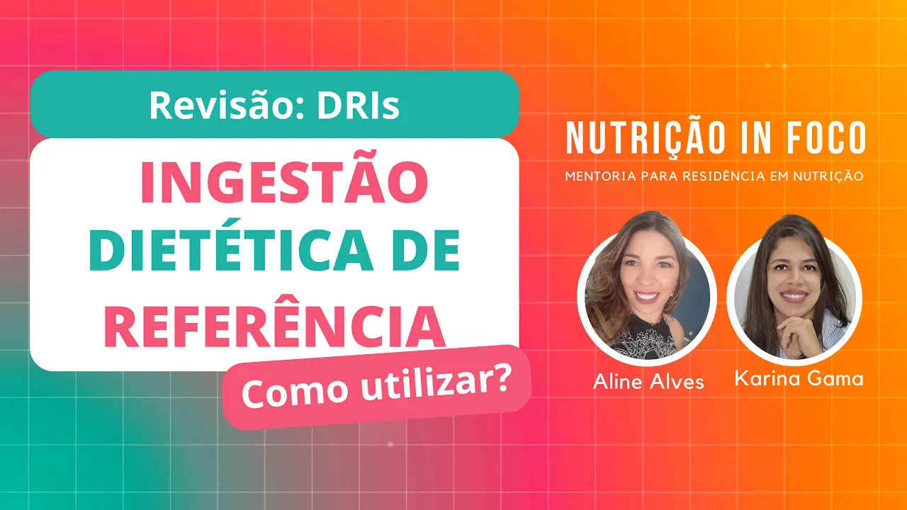 [Música] Olá eu sou a Karina da nutrição em foco e no vídeo de hoje nós vamos fazer uma revisão rápida sobre as dris ou ingestão dietética de referência Então as dris nada mais são do que um conjunto de valores de referência para nutrientes específicos estão divididas em quatro categorias de referência Então a primeira é a r que a necessidade média estimada segundo a RDA que a ingestão dietética recomendada terceiro aí que a ingestão adequada e quarta leve que é o nível máximo de ingestão tolerável então cada uma dessas categorias tem características diferentes que nós vamos