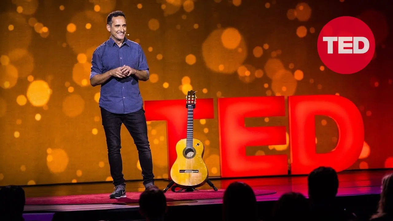 (Sings "Adios Nonino") He also played it on his bandoneon, a 19th-century German instrument created for churches that couldn't afford to buy organs, and that ends up, incredibly, in Río de la Plata, forming the very essence of the tango and the milonga, in the very same way another instrument just as important as the bandoneon did: the Spanish guitar. (Applause) To which, by the way, Vicente Espinel, in the 16th century, added a sixth string. It's amazing how all these things are coming full circle.