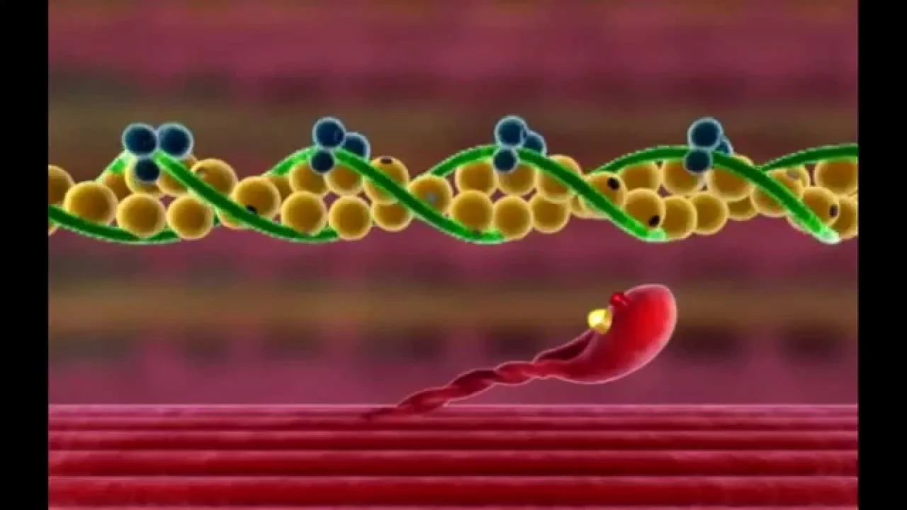 puedes ver ahí los filamentos delgados y gruesos veamos qué es lo que ocurre dentro los iones de calcio que vas a ver en morado ya mismo se unen a la troponina c Estos son liberados por el retículo sarcoplásmico al unirse a la troponina esta cambia de forma y provoca el desplazamiento de la tropomiosina este desplazamiento que estás viendo deja libre al sitio activo de lactina Para qué para que la cabeza de miosina se pueda unir Recuerda que la cabeza de miosina debe ser activada antes de que el mecanismo paso a paso de la contracción empiece