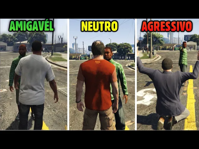 Porque o Franklin com os Families consegue pegar qualquer carro dos verdes lá e sair andando, que ninguém vai chiar com ele. Já aqui você já vê que é tiroteio na hora. Com o Michael, nós obtemos basicamente a mesma reação que o Trevor.