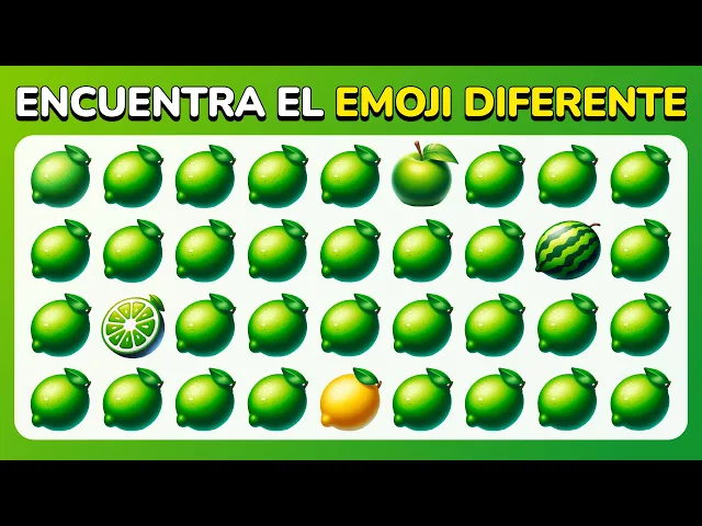 Sí, aquí está camuflado justo entre los trozos de sandía. [Música] Ahora intenta encontrar el emoji diferente entre todos estos [Música] pepinos. Vaya, entre ellos se esconde un [Música] brócoli.