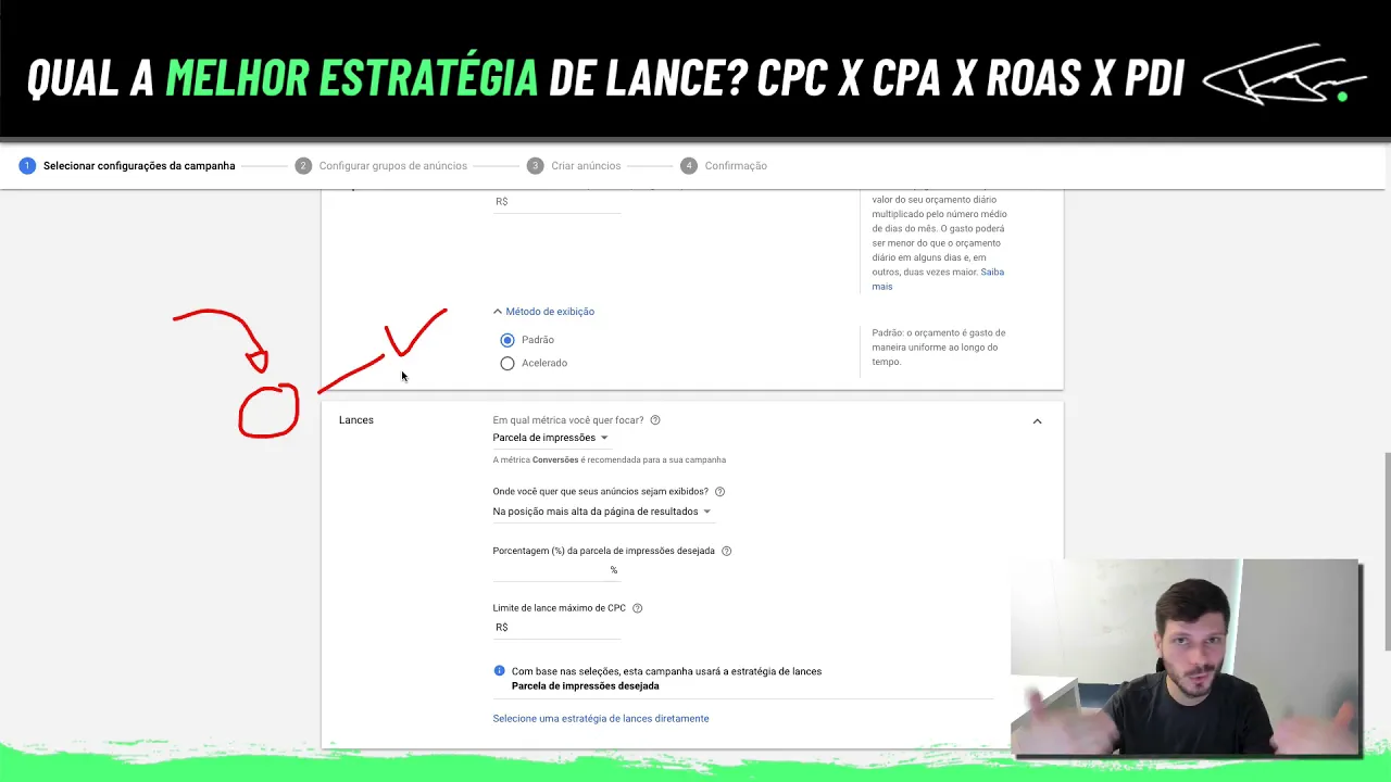 parcela de impressões né que é basicamente no local se definir o local do anúncio e pagar por isso então você quer na parte superior dos resultados ou da posição sempre mais alto nos anos do usda no hotel eu tô disponho é disposto a pagar realmente um lance maior mas é o meu foco é sempre manter a primeira posição talvez com algumas palavras faz sentido pra você e você vai ser cobrado aí até hoje lance por passar parcela de impressão desejada e como é que funciona isso é parte de pressão de água é a freqüência com