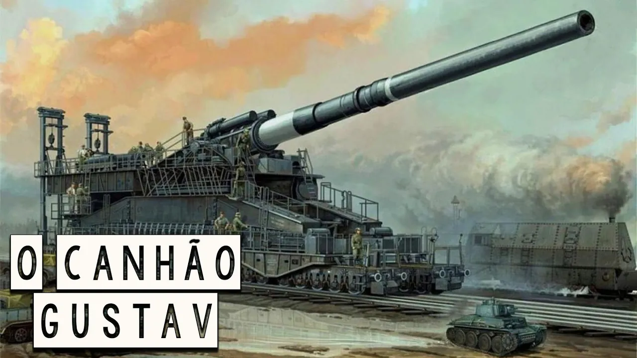 e o canhão Ferroviário Gustavo foi certamente uma das armas mais impressionantes da segunda guerra mundial o gigantesco canhão de 800 milímetros que poderia acertar alvos até 48 km de distância foi desenvolvido para atacar a famosa linha imaginou o complexo de fortaleza-ce obstáculos francês construídos na fronteira com a Alemanha mas devido a atrasos em sua construção ele só ficaria pronto após a capitulação Francesa o grande Gustavo participaria apenas do Cerco à cidade Soviética de sebastopol em 1942 onde eu pude mostrar todo o seu poder destruindo importantes fortificações do exército vermelho seu irmão gêmeo o canhão Dora