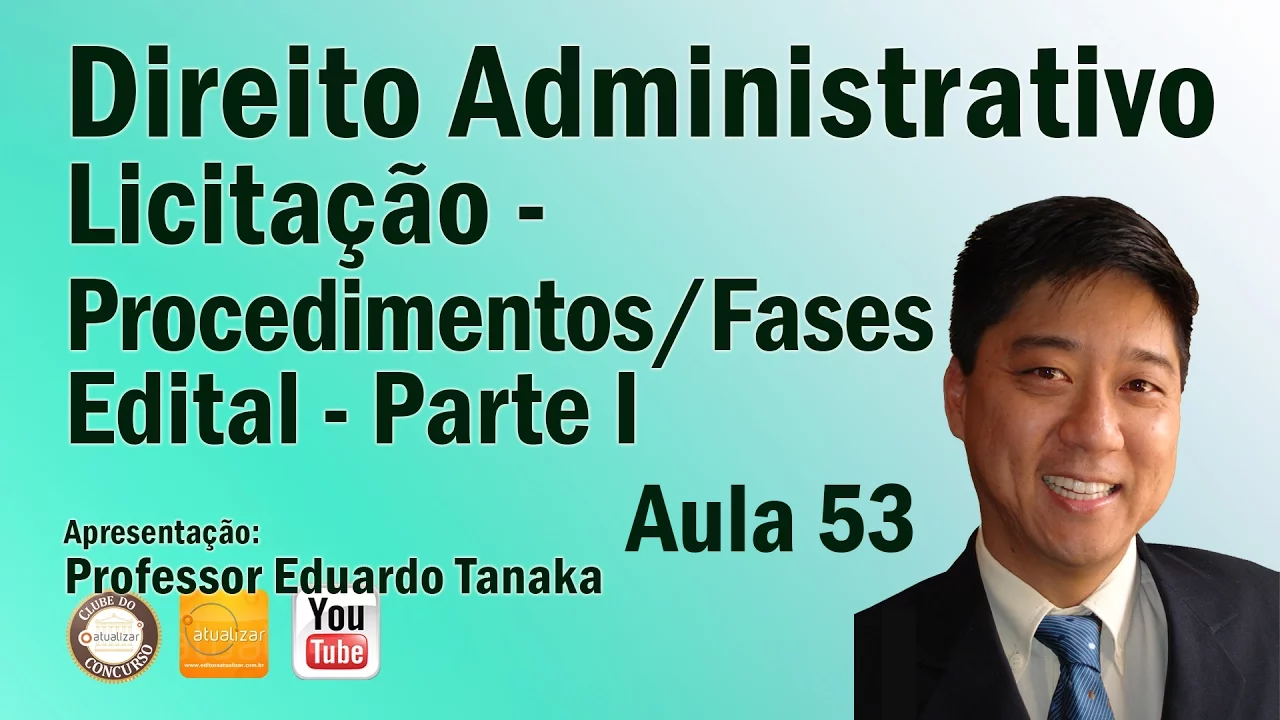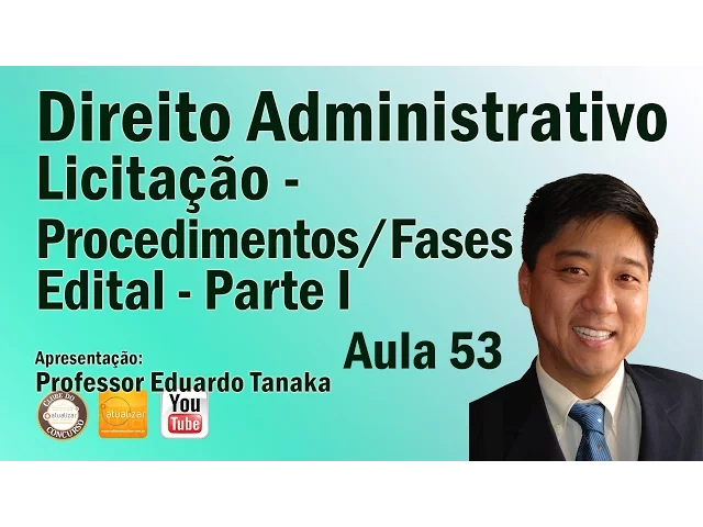 [Música] Olá amigos da editora atualizar estamos aí mais uma aula de direito administrativo Professor Eduardo Tanaka e vamos falar agora do edital né estamos em fases de licitação vamos falar do edital que nada mais é que a lei interna é você que presta concurso público sabe muito bem disso né quando saiu edital por exemplo de concurso público que que é aquilo é a lei da é a lei entre aspas né além interna do concurso da mesma forma quando eu falo de licitação nós temos uma lei interna daquela licitação específica horas eu quero por exemplo ele