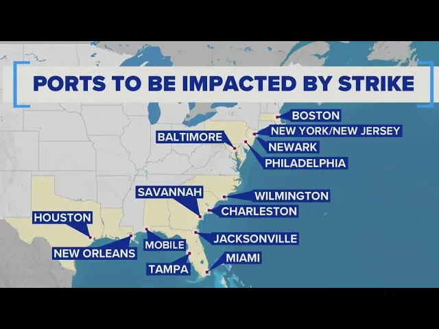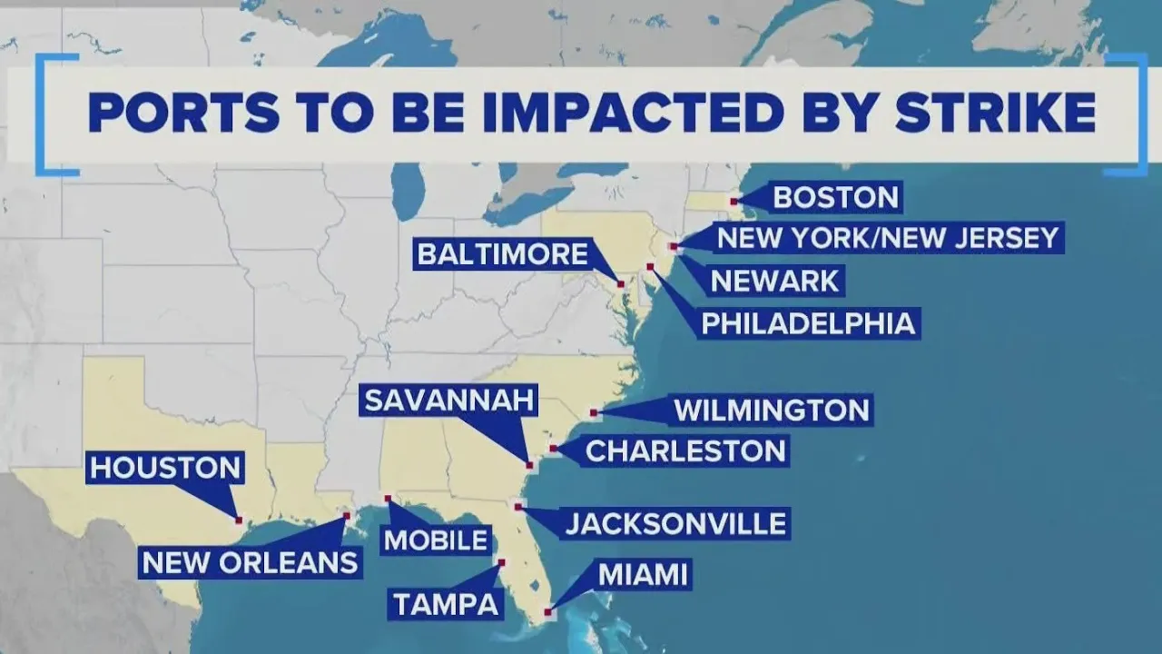 to strike they're going to walk off the job when their current contract expires now it's a six-year contract each of these contracts are 6 years and the expiration date is midnight on Monday so 1201 Tuesday these workers are going to walk off the job there's going to be a full-on work stoppage up and down the east coast and parts of the gulf now the Ila has not released any details specifically about exactly where these picket lines are going to be they said that's going to come likely sometime tomorrow however they did note what the major