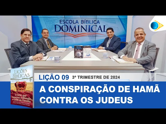[Música] queridos irmãos a paz do Senhor Jesus estamos entrando no ar com o programa Escola Bíblica Dominical seja bem-vindo Obrigado por sua audiência esta programação está sendo transmitida através do canal 14 em Recife e região metropolitana pelas repetidoras em todo o estado de Pernambuco também pelo canal no YouTube Rede Brasil oficial e pelo Spotify da Rede Brasil hoje estudaremos A nona lição do trimestre com o tema a conspiração de Amã contra os judeus e para comentar esta lição contamos com a presença do evangelista Alessandro Barreto P irmão Alessandro a paz do Senhor Pastor n Jackson