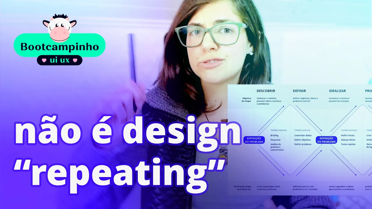 anyway, I'll teach you with a more linear process, since you're learning. But know that many times this Design Thinking goes into one step, then it shifts back to another and with time you will start understanding this malleability of when to go and when to come back, what to do, what not to do, but, mainly, focus on thinking the design. Understand what you are doing, why you are doing it and not just copying a bunch of things without even knowing.