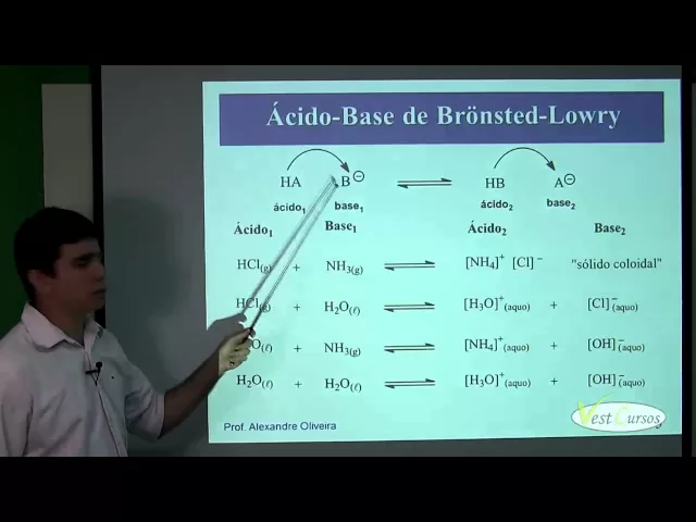 bem e ainda a reação inversa isso é o ácido esse aqui seria base o cat on do o h mais para base quando cl - recebe água mais ele se transforma em ácido clorídrico quando esse kate andou ainda mais para o cloreto ele volta a ser harmônico então vejo como conceito de bronze é mais abrangente do que o dia hips o cloreto é uma base de bronze porque ela é capaz de receber um próton é mais o coreto jamais em uma base a hips uma base a rendição substância em solução aquosa libere de oxigênio como