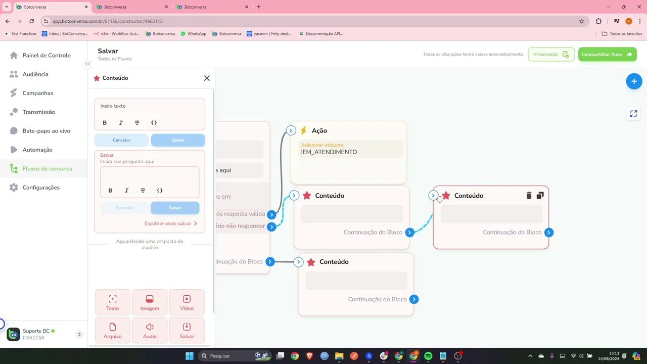 e aqui vai me exibir que é um bloco de conteúdo que está sendo usado Então seria este o vídeo eu espero que tenham gostado caso tenha tido alguma dúvida queira um atendimento você pode estar entrando em contato conosco através da nossa central de ajuda ajuda. botconversa.com BR e acionar o nosso suporte estaremos à disposição para eu poder auxiliar em qualquer dúvida que tiver Fico por aqui até mais