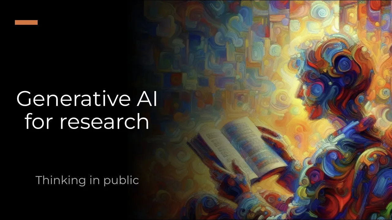 I'm going to share my screen um and just make sure that everyone can see that thank you yes all right great so I'm going to talk about generate AI um in the research process um I I think that there's a a lot of interest and concern around this topic at the moment um as I said I've been um looking at this quite uh in quite a lot of detail over the last two years or so um I have some opinions and positions that uh may Be controversial um so I will share some of that today