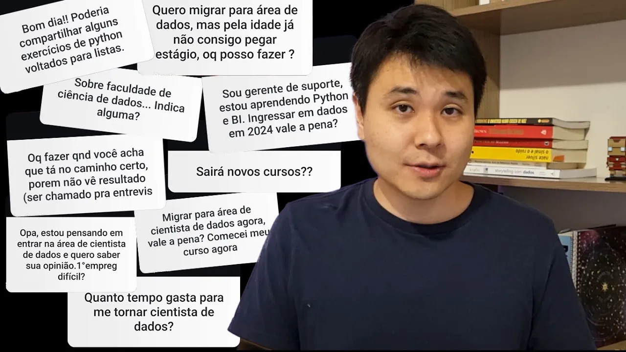 Opa estou pensando em entrar na área de ciência de dados e quero saber sua opinião primeiro emprego difícil mais um vídeo respondendo as principais perguntas que vocês me mandaram lá na caixinha do Instagram que eu abro quase todos os dias então se você ainda não me segue me segue lá e também não esquece de deixar o joinha nesse vídeo aqui e se inscrever nesse canal Aqui também tá então para quem não me conhece eu sou o André coch eu sou cientista de dados e eu tenho esse canal onde eu falo sobre Ciência de dados transição