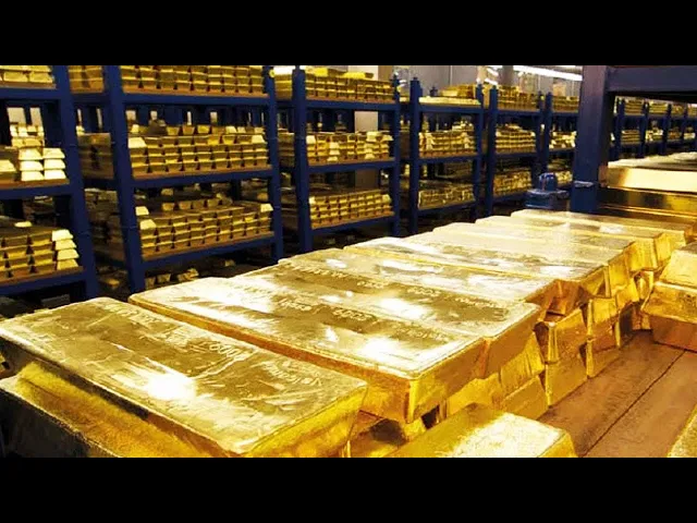 esta pequeña pila de lingotes de oro puede no parecer mucho pero si tratas de ponerla en la parte trasera de tu coche reventarías los neumáticos ahora llevan los lingotes hasta la mayor cámara acorazada de oros subterránea del mundo está valorada en más de 380 mil millones de dólares pero qué harías con tanto oro deja tu opinión en los comentarios si quieres saber cómo se hace una cadena de oro tienes el enlace en la descripción y en el primer comentario dale like al vídeo si te ha gustado Y compártelo con otra persona que le pueda interesar