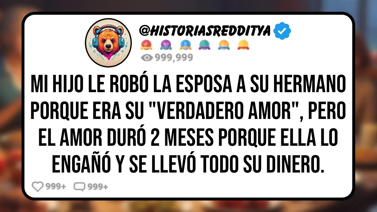 mi hijo le robó La esposa a su hermano porque era su verdadero amor pero el amor duró dos meses porque ella lo engañó y se llevó todo su dinero Nunca imaginé que estaría escribiendo algo así mucho menos compartiéndolo con el mundo pero necesito saber si estoy equivocado por cómo me siento mi familia ha pasado por más turbulencias en los últimos meses de lo que la mayoría enfrenta en toda una vida me siento como si estuviera viviendo una pesadilla viendo como todo lo que hemos construido a lo largo de los años se desmorona por las acciones