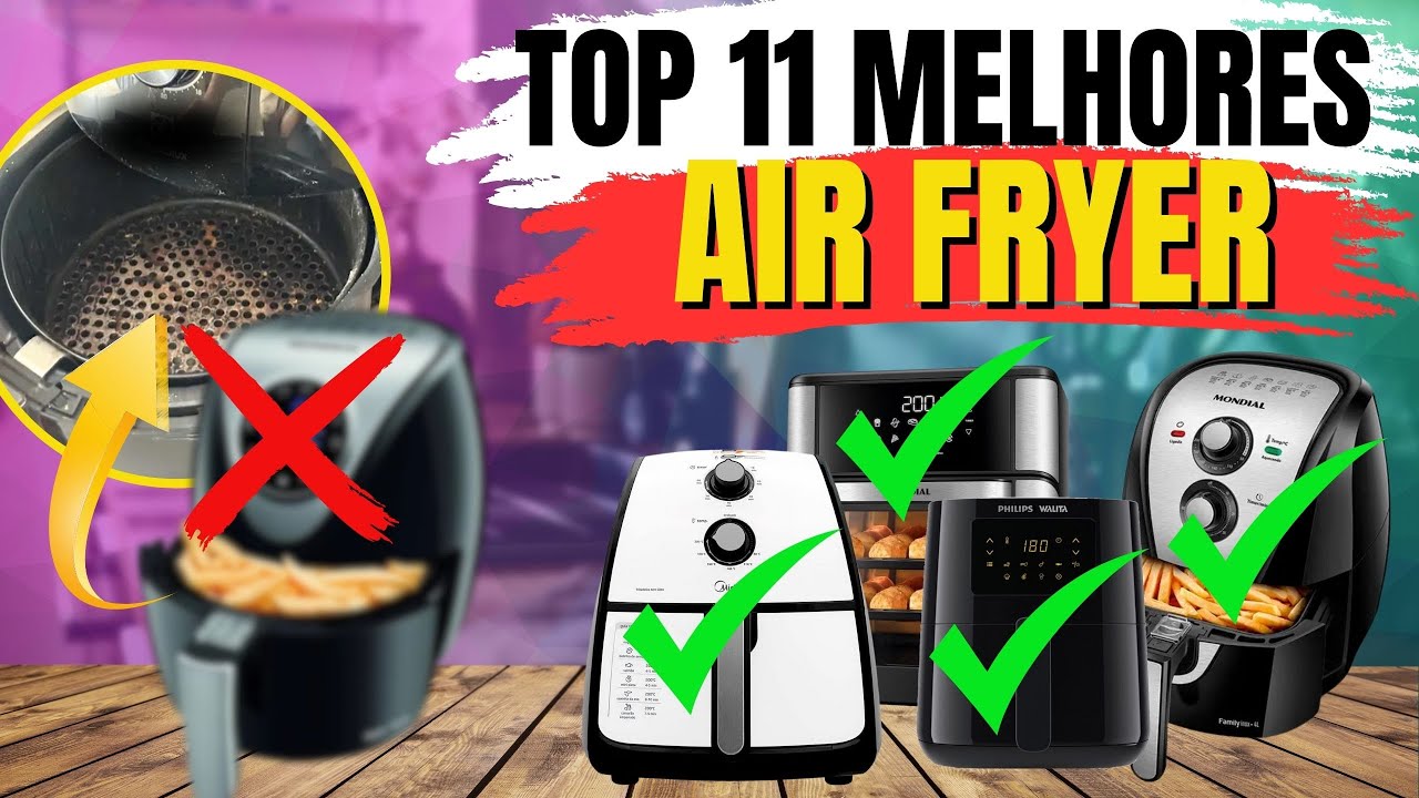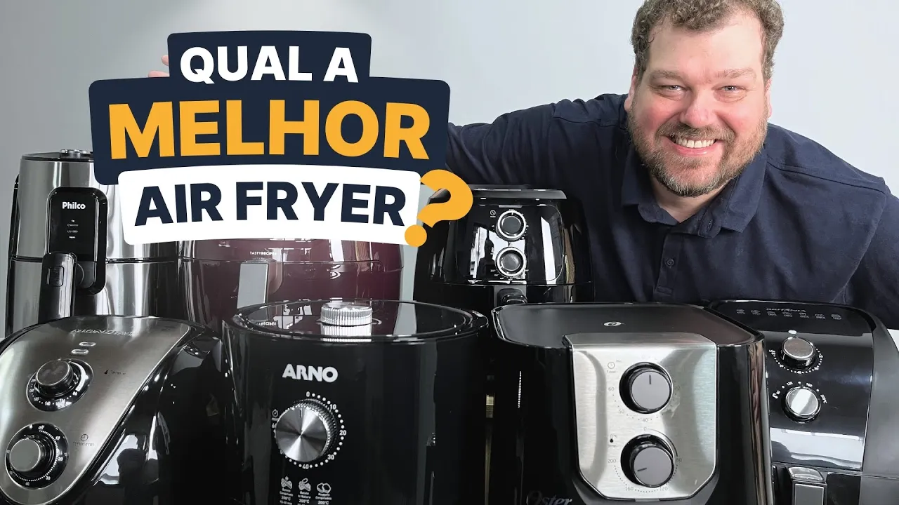 hoje você vai conhecer a melhor Air Fryer de 2024 nós compramos os principais modelos do mercado e testamos quesitos como volume útil do cesto consumo ruídos preparo de diferentes tipos de alimentos entre outros se você estiver com pressa e quer ir direto às nossas indicações acesse o link com todos os dados dos Testes aqui nos comentários ou na descrição do vídeo veja agora os resultados dos Testes de cada uma das airfryers a primeira testada foi a Midea Black Stone que custou R 239 ela mede 23,7 cm de largura 29,5 cm de altura e 33 cm