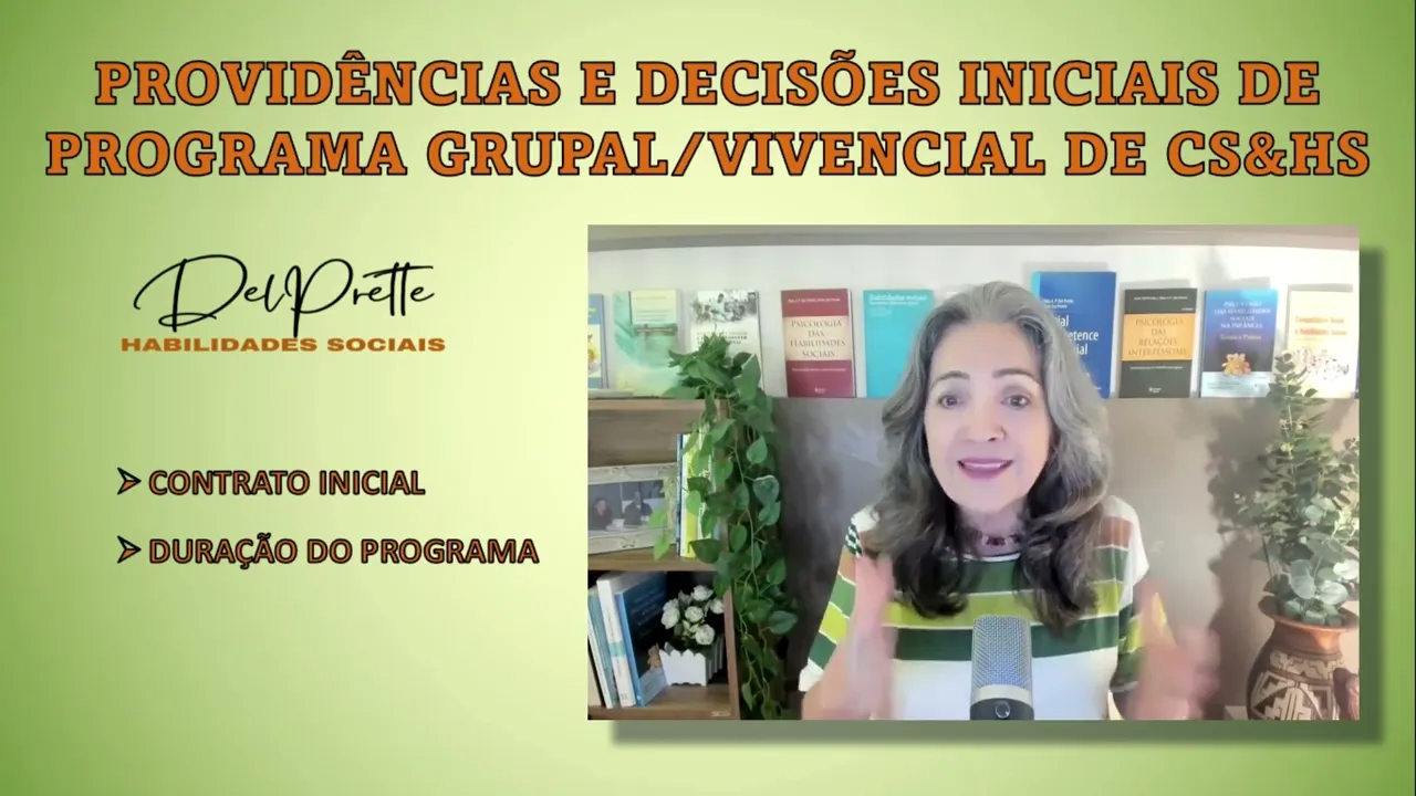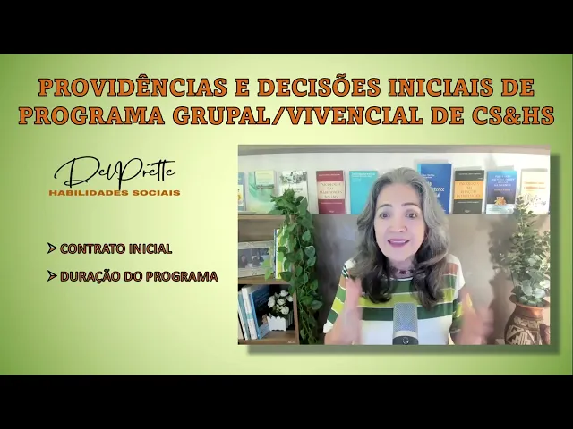 [Música] e vamos começar com a nossa aula sobre planejamento de programa grupal vivencial de competência social e habilidades sociais e nós colocamos aqui adultos porque vai ser um foco maior hoje e nós vamos ter uma aula específica para criança também em geral vivencial Então nós vamos ter uma aula equivalente a essa a respeito de programas para crianças Então vamos lá vamos ver essa daqui agora experiência com programas grupais foi sempre muito mais usual mais frequente mais recorrente né então nós fizemos especialmente aí no caso os programas vivenciais E é isso que a gente vai falar