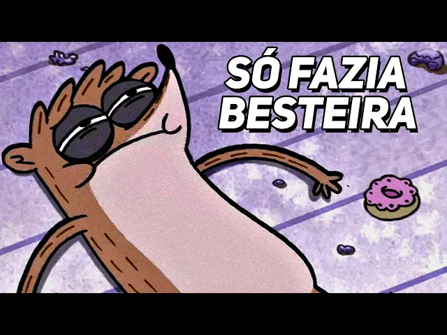 em diversas vezes eu já comentei aqui no canal sobre a forma como Rigby era um cara completamente babaca e que tinha muitas atitudes bem infantis e contestáveis no começo de apenas um show Mas uma coisa que sempre passou um pouco despercebida por mim foi o fato dele quase sempre acabar Pagando bem caro por essas atitudes ruins que tinha já que se tu parar para dar uma olhada nas três primeiras temporadas por exemplo é possível de notar o quanto esse desenho não tinha nenhuma pena do Rigby e fazia questão que ele pagasse e sofresse por seus