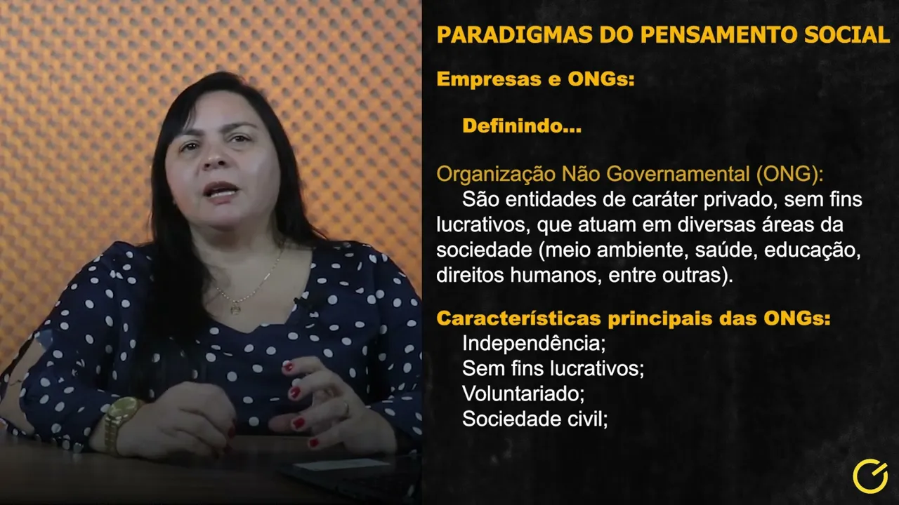 A compreensão das instituições sociais é de fundamental importância para entender a dinâmica das relações sociais e os processos de mudança social. Outra categoria que vamos abordar agora é sobre a organização não governamental, chamada de ONG ou ONGs. O que é ONG?