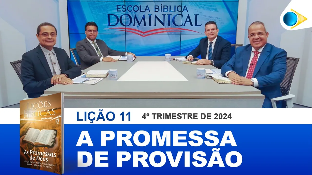 [Música] queridos irmãos a paz do Senhor Jesus estamos em mais um programa Escola Bíblica Dominical Obrigado por sua companhia essa programação está sendo transmitida em Recife através do canal 14 e em todo o estado de Pernambuco pelas oras da Rede Brasil também pelo Spotify e nosso canal do YouTube Rede Brasil oficial sejam bem-vindos que Deus continue abençoando você e toda a sua Família através do estudo da palavra de Deus hoje estudaremos a 11ª lição com o título a promessa de provisão e para comentar essa lição contamos com a presença do evangelista jaziel marqu jaziel apaz