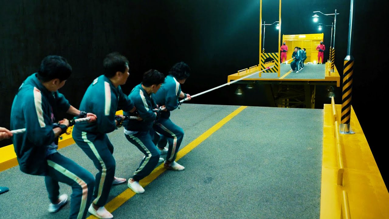 Their argument is stopped when the facility’s staff, dressed in red suits and masks enter the room. They welcome the people and announce that they will be playing six games in six days, and those who win all six of them will win a lot of prize money. One of the participants is Sangwoo, Gi-hun’s childhood friend who was supposed to be on a business trip to the US according to his mother.