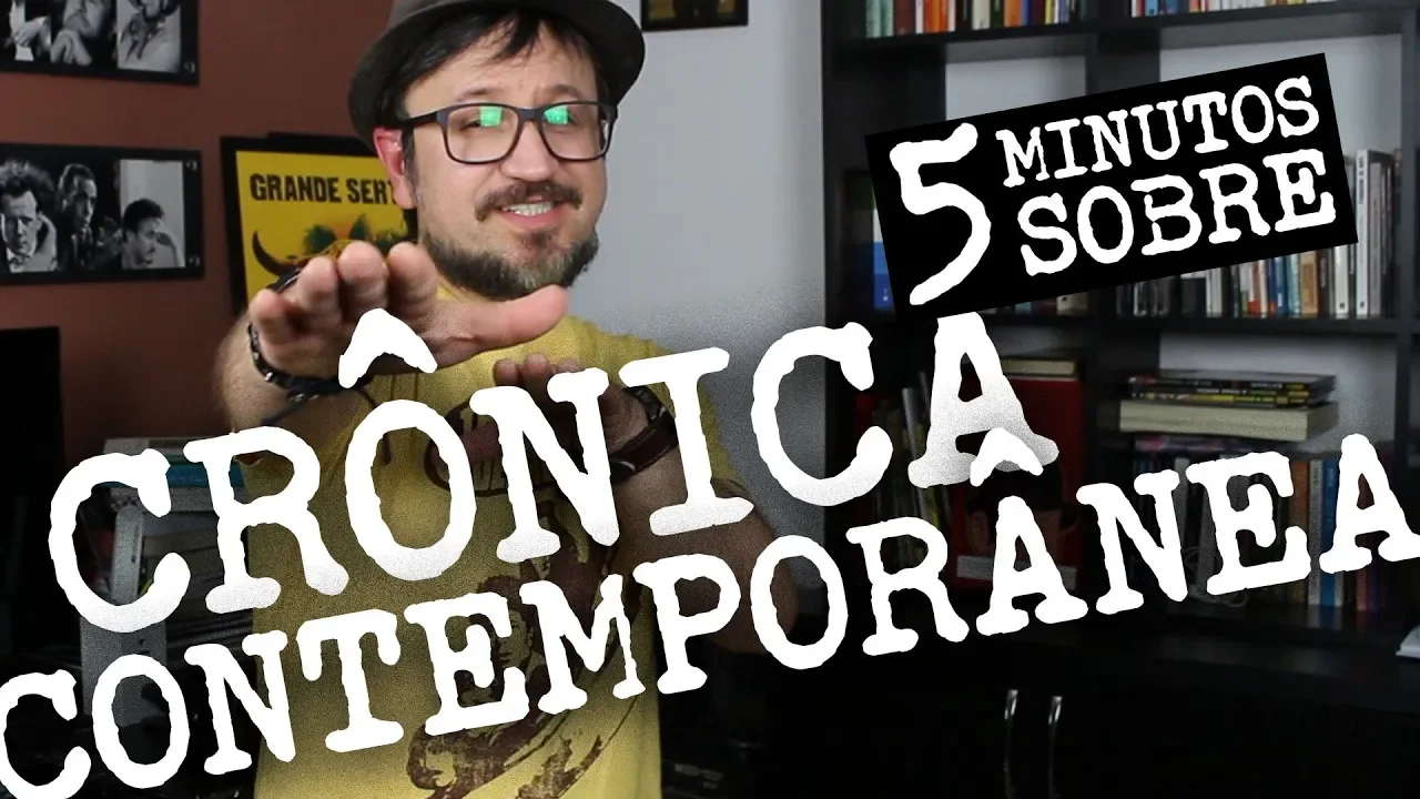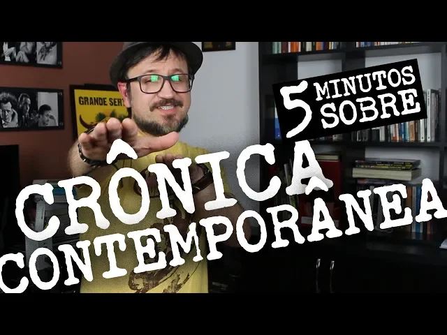 sá moçada hoje vai falar nos cinco minutos sobre a crônica brasileira contemporânea chega aí então crônica brasileira contemporânea pra começar o vídeo vão falar sobre o que é crônica velho um dos gêneros mais importantes do brasil tanto pra leitura pelo sol o pré-vestibular neva crônica é um gênero textual que nós podemos dizer um gênero híbrido que mescla características do jornalismo com características literárias né o próprio nome crônica de cronos né quem é ligação com algo ligado ao tempo atual está certo ao tempo que estamos vivendo então o cronista ele pega um fato cotidiano ela e