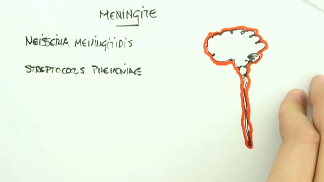 seja a mais comum de todas tá a outra é strepto cocos pneumonia esse aqui o nome científico da outra bactéria que causa a men meningite tá então essas duas bactérias né Elas podem causar a meningite né que é um nome diz que é a inflamação das meninges vou desenhar as meninges para vocês aliás vou desenhar o sistema nervoso para vocês esse aqui é o cérebro cerebelo ponte bubo e aqui a nossa medula né nossa medula nervosa então o que que eu desenhei aqui para vocês agora o nosso sistema nervoso central Só que quem protege o