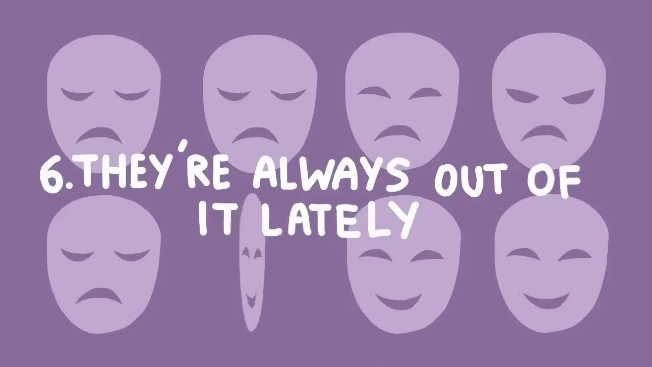 the red flag for hidden depression starts to wave when it stops being occasional and becomes regular and then turns into dependent the anxiety and depression Association of America adaa found that approximately one in every five people who were depressed also had a substance use disorder six they're always out of it lately is your usually punctual friend suddenly forgetting your lunch dates does your friend zone out more often than usual when you're talking to them difficulty concentrating and remembering is one of the symptoms of depression the depressed person often has a hard time keeping their train
