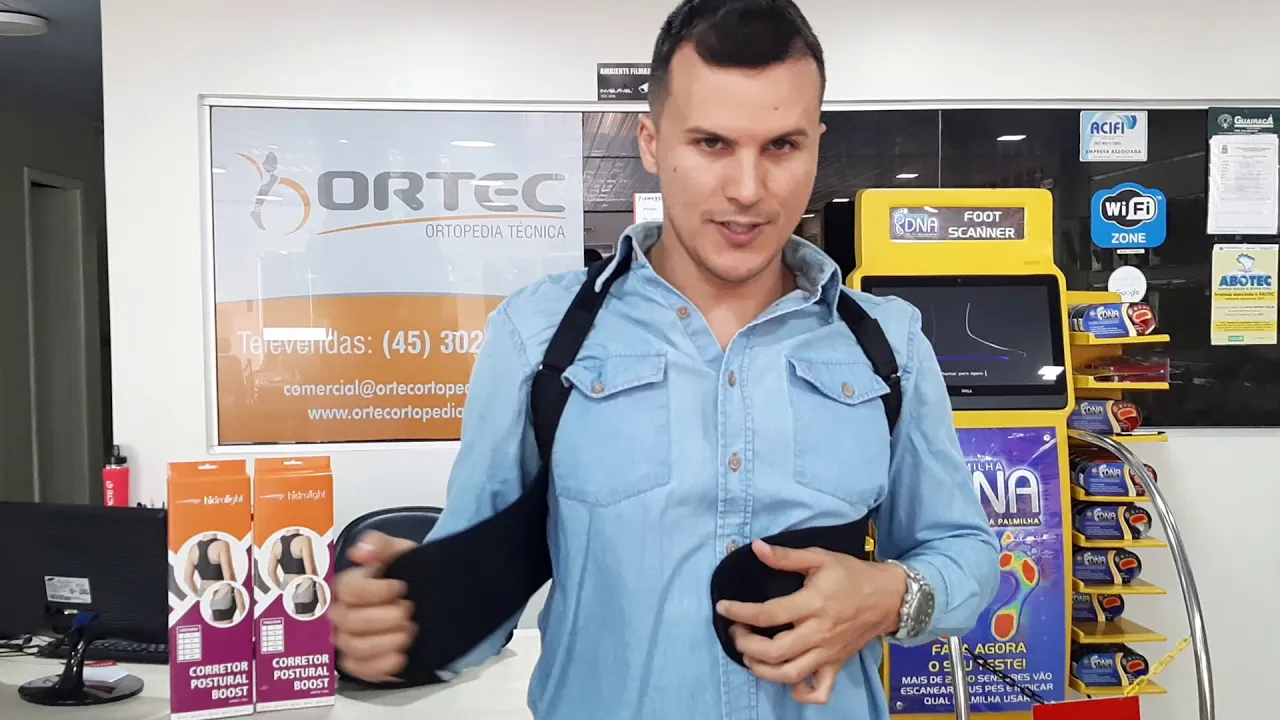 ele por baixo da blusa inclusive eu tô utilizando agora no por baixo nessa essa camisa aqui ele fica discreto você que fosse consegue perceber que não aparece que eu tô utilizando o corretor postural é bem flexível ele é uma material bem anatômico bem flexível você consegue ajustar é um detalhe importante também que ele tem uma chapa de pvc aqui atrás que ele vai te dar uma estabilidade maior nessa região torácica aqui se você vai conseguir manter essa postura por mais tempo o último detalhe também queria tipo mochila tipo mochila no sentido aqui eu tô com