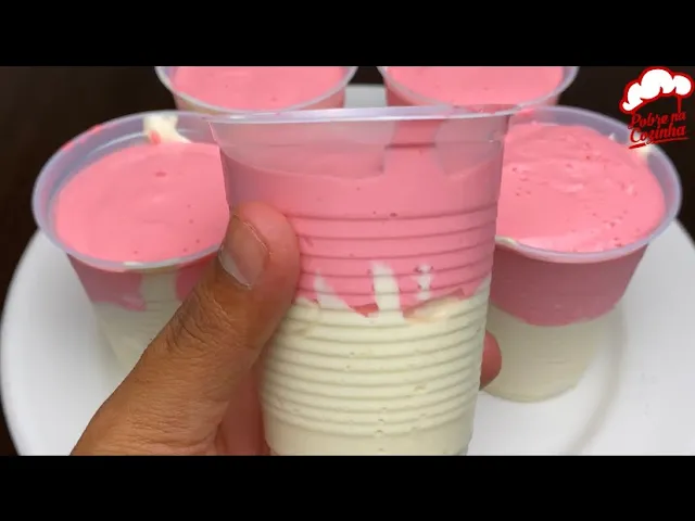 our personal glass Look at how this dessert It's very easy to make besides being beautiful it's delicious uh And then for this dessert to better identify let's take the fridge and leave it for 30 minutes just to freeze but it's optional after 30 minutes it will be like this super consistent with a wonderful texture it goes at your house i'm sure everyone will love it i hope you enjoyed this was another recipe here from the poor guy in the kitchen a big hug until next time and thanks And there