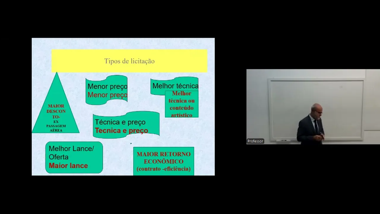 Olá pessoal tudo bem eh vamos continuar os nossos estudos a respeito do procedimento licitatório né Nós estamos tratando de licitação procedimento então que Visa buscar a proposta mais vantajosa para os interesses aí da administração pública n passada nós observamos a questão dos princípios colocados aí na lei 2021 fazendo paralelo com a lei de 93 traçando Então quais que são as regras básicas né princípio a estrutura né a estrutura de uma licitação hoje vamos tratar então de alguns outros assuntos também aí continuando o tema nós temos aí o objeto da licitação pessoal o que que é o objeto da licitação é aquilo que a administração está querendo está perseguindo o que que ela quer contratar ela quer ter uma obra ela quer ter um serviço ou ela quer comprar ou ela quer vender n é ela quer fazer uma locação e isso é que será colocado no procedimento para depois futuramente ser contratado com o licitante vencedor da licitação quando el entender assim conveniente veja vocês que o objeto da licitação sempre vai se confundir com objeto do contrato isso é uma situação lógica veja vocês ela coloca lá no edital como objeto aquisição de 1000 sacas de cimento qu vencer a licitação vai firmar o contrato e o objeto do contrato vai ser a entrega de 1000 sacas de cimento da marca aí sim no contrato eu vou ter a marca do dessa sacas de cimento porque né aqu ele venceu a licitação colocando na sua proposta a marca que ele iria integrar Então veja o objeto da licitação confunde sempre com o objeto do contrato se lá no edital está 1000 sacas de cemento é o que vai constar como objeto do contrato 1000 sacas de cemento Ok então objeto da licitação eh nós temos pessoal uma expressão que nós falamos para vocês que a licitação ela é obrigatória né Essa obrigatoriedade de licitar obrigatoriedade de licitação eu posso verificar sobre duas vertentes né tem dois significados primeiro é o significado de que a licitação ela é obrigatória porque eu tenho esse mandamento constitucional de regra para administração contratar ela tem que necessariamente Obrigatoriamente fazer a licitação né de regra não pode ter um contrato sem a licitação Essa é primeira a primeira vertente desta expressão a outra vertente ou outro significado é que a administração deve Obrigatoriamente aplicar a modalidade adequada a modalidade que está na na lei para a espécie de contratação que ela quer então por exemplo se ela quer uma obra espe ela tem lá um serviço especial de engenharia ela tem uma obra especial ela não vai poder fazer pregão por quê Porque pregão não é a modalidade prevista na lei para esse tipo del esse tipo de contratação essa espécie de contratação ela estaria mais indicada para uma concorrência e não para um pregão então é obrigatório se aplicar a modalidade que está na lei verificando o objeto da licitação né o a espécie de contratação que a administração vai querer e aplicar a modalidade correta então eu tenho essas duas vertentes para esclarecer o significado da expressão obrigatoriedade de licitação as modalidades de licitação pessoal eu coloquei a na tela para vocês observarem as modalidades que eram lançadas anteriormente na lei de 93 e uma lei de 2022 e as modalidades trazidas aqui pela nova lei 14133 n modalidades de licitação está intimamente ligado com aquilo que a administração está querendo a administração está querendo comprar tomate a administração está querendo construir uma obra Opa Então nós vamos observar que em razão do que ela está querendo o seu objeto Então nós vamos ter as regras estabelecidas nas modalidades e eu tenho que aplicar essas modalidades então por exemplo pregão pela Bens de serviços comuns Eu uso o pregão perfeito então o que que eu quero comprar tomate tomate é um bem comum eu encontro facilmente no Mercado Perfeito então aplico o pregão é possível é possível Beleza então modalidades de de licitação está ligado aquilo que a administração está querendo objeto da licitação Ok o que não pode ser confundido com tipo de licitação num outro slide vou apresentar para vocês os tipos de licitação tá os tipos de licitação está ligado ao critério de julgamento da proposta ou das propostas perfeito então por exemplo Jou julgar a proposta pelo menor preço Opa menor preço é o tipo de lição é o critério de julgamento não é então modalidades de licitação está ligado aquilo que a administração está querendo o objeto da licitação e os tipos de licitação está ligado à forma que será julgado aí as propostas né os critérios de julgamento da proposta Ok então observando aí esse quadro vocês percebem que na lei de 93 eu tinha cinco modalidades a concorrência tomada de preço convite concurso e leilão depois mais adiante eu tenho a modalidade de pregão colocada na lei 10520 de 2002 observando a lei nova ela não traz mais tomada de preço ela extinguiu a tomada de preço extinguiu o convite e além do mais colocou as regras do pregão Nesta mesma lei nessa mesma Norma então pela lei nova nós temos a concorrência O Concurso o leilão o pregão e criou-se uma nova modalidade chamado diálogo competitivo Ok essas modalidades serão tratadas mais adiante com vocês aqui só a título de de ação de curiosidade nós tínhamos também lá atrás eh uma lei que tratava de uma modalidade chamada consulta que era específico para Anatel e depois eu tinha aqui o regime diferenciado de contratação né Aí revogados eh tratava da Copa de Confederação jogos olímpicos 2016 obras do PAC todos revogados pela lei lei nova então nós ficamos com essas aqui concorrência concurso leilão pregão e diálogo competitivo para estudo posterior os tipos de licitação que eu falei para vocês está relacionado ao critério de julgamento da proposta Ok Aonde nesse quadro eu tenho aí em vermelho eu tenho co